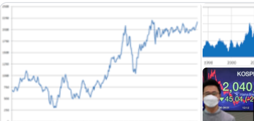 구글스프레드시트로 보유 주식을 관리하다 보면 벤치마킹을 위해 코스피나 코스닥 지수를 사용하는 경우가 있다. 구글스프레드 시트로 그려진 그래프를 통해서 추세선을 볼 수 있다.